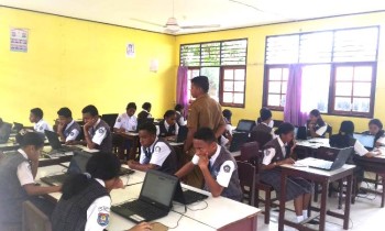 Keseriusan mengikuti Simulasi sekaligus sebagai Gladi Bersih oleh Peserta didik Kelas 9 SMP Negeri 1 Serui sebagai tahap awal untuk bagaimana mengenal dan menggunakan aplikasi CBT Puspendik untuk menjawab Soal-soal UNBK 4 Mata Pelajaran secara online nantinya.